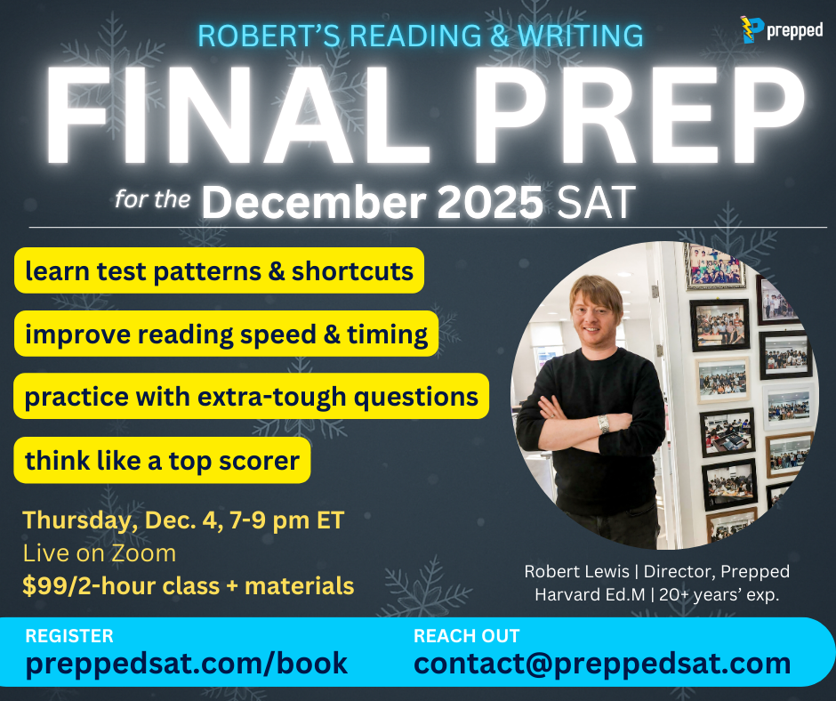 The final Thursday before each SAT, 7–9 pm ET